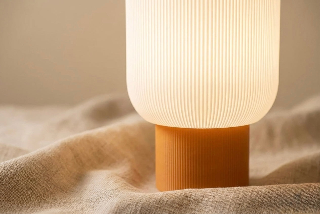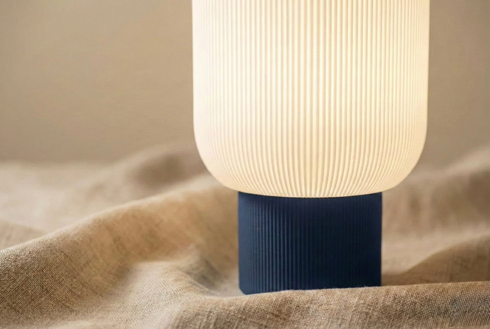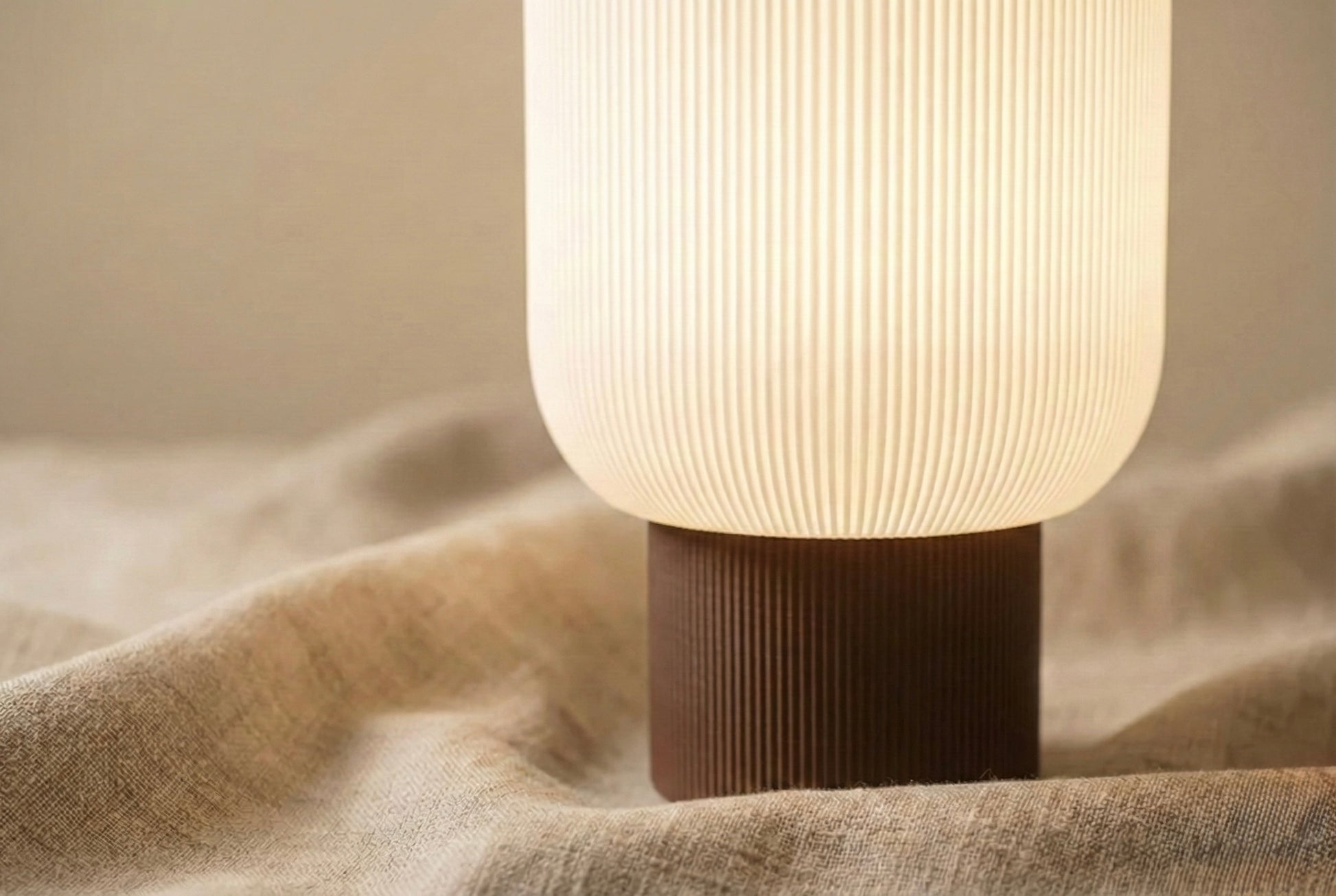 Fabricada en Chillán mediante impresión 3D de alta precisión, cada pieza toma más de 8 horas en materializarse capa por capa, creando una textura estriada única al tacto que juega con la luz incluso cuando está apagada.