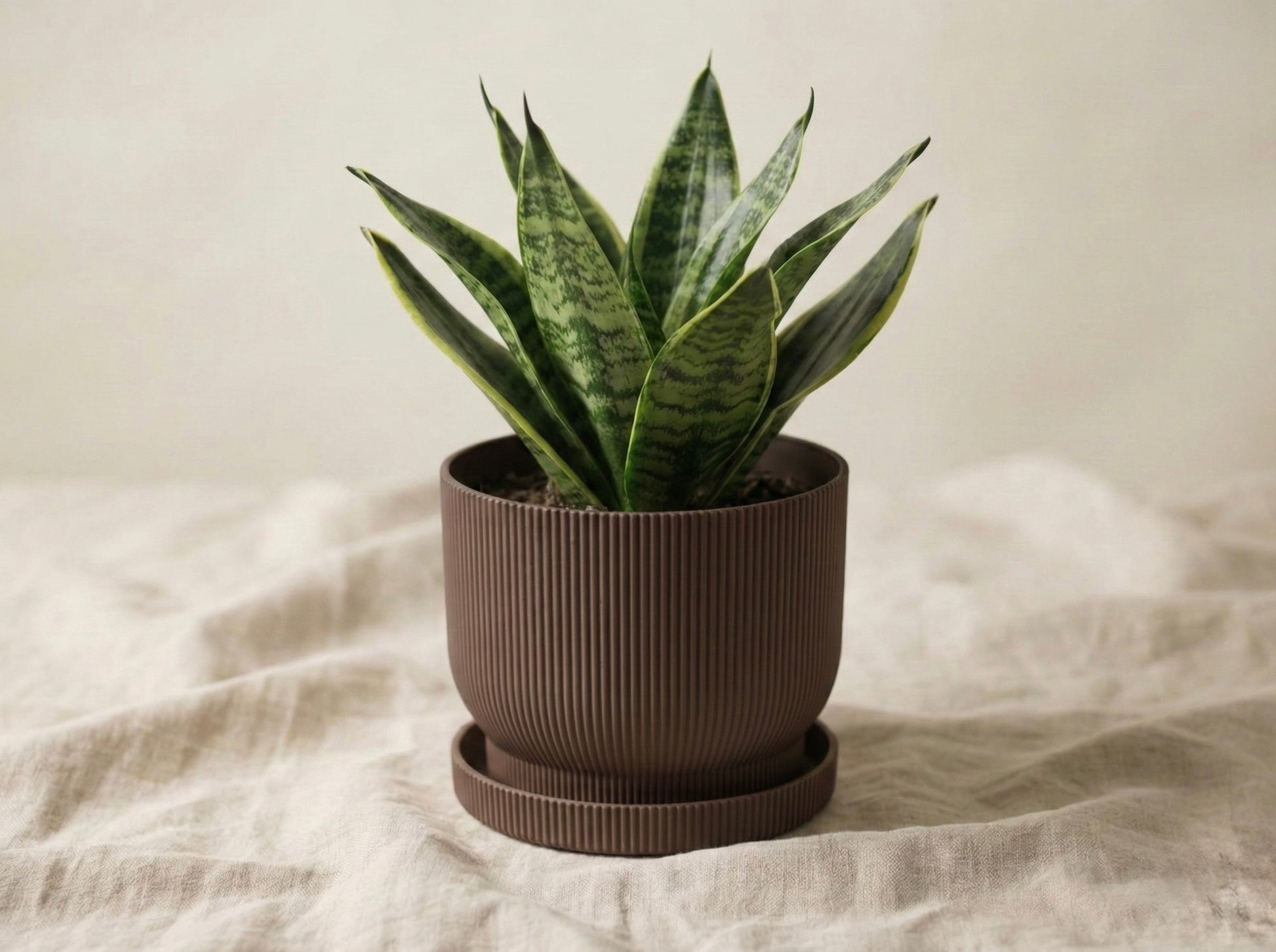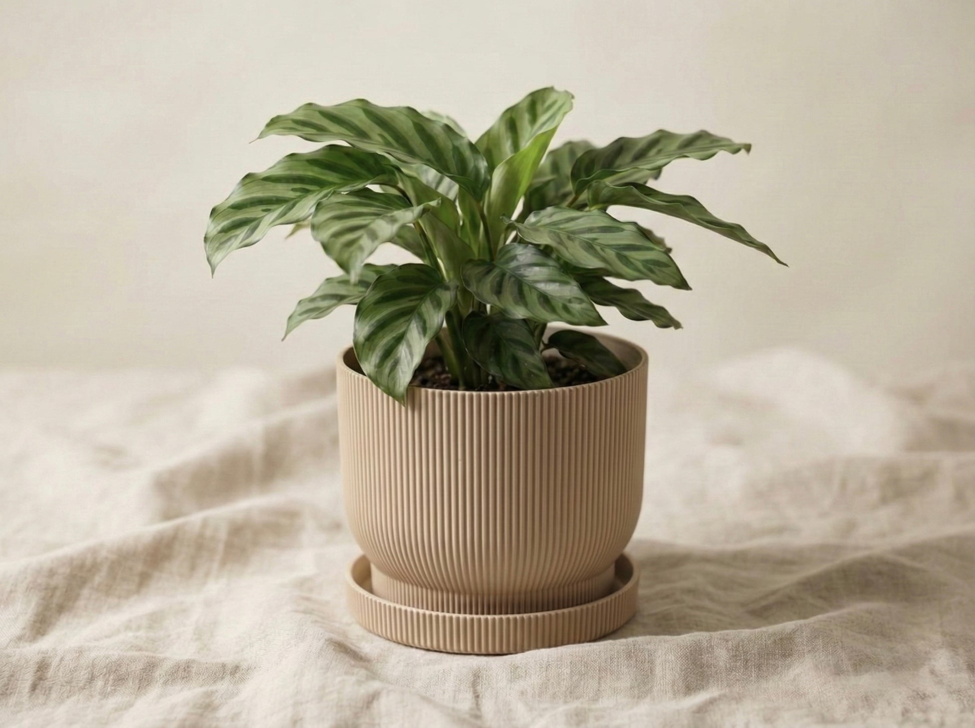 Geometría Paramétrica: Su textura externa juega con las luces y sombras del día, convirtiendo la maceta en una pieza decorativa por sí misma, tenga planta o no.