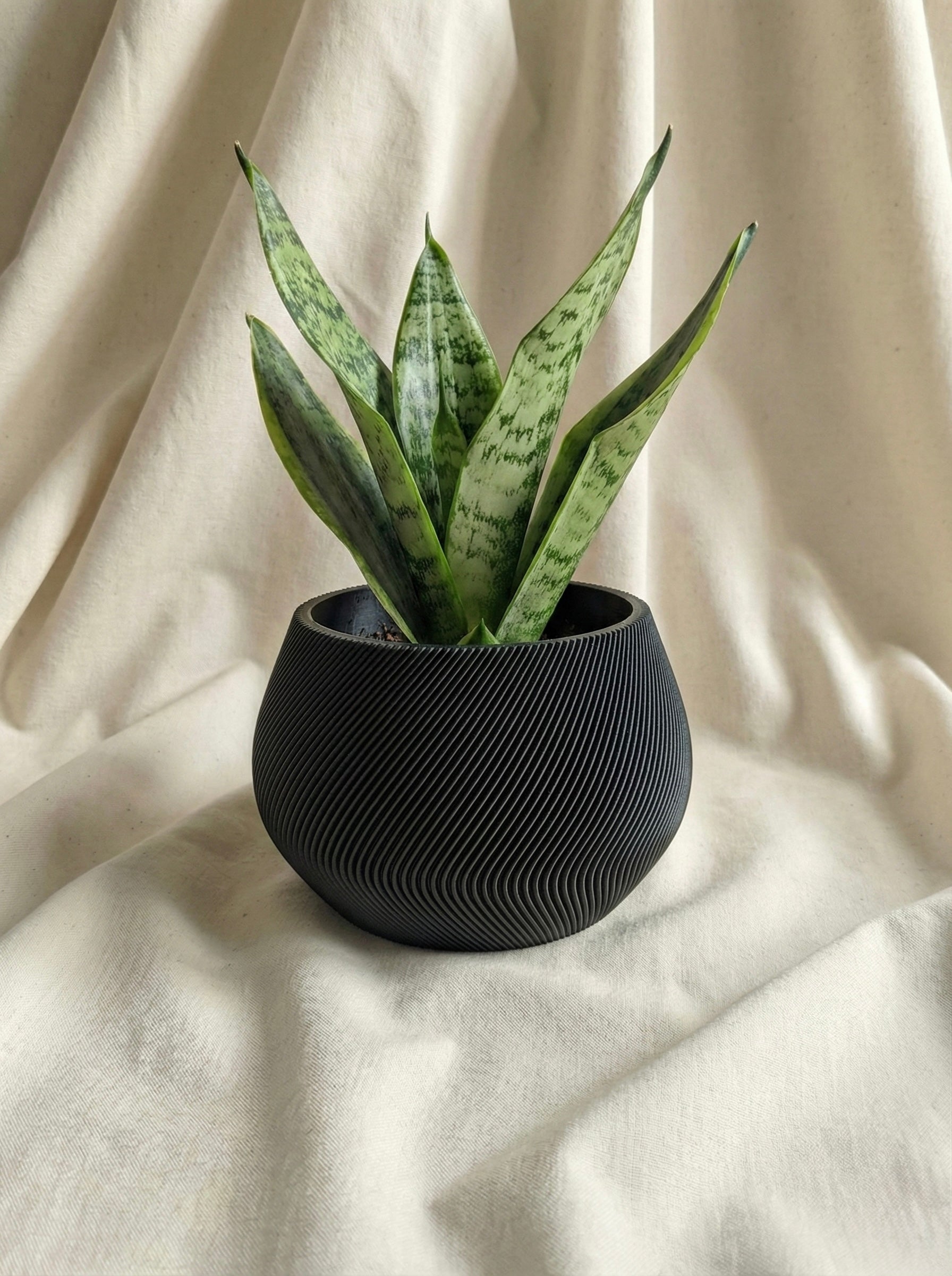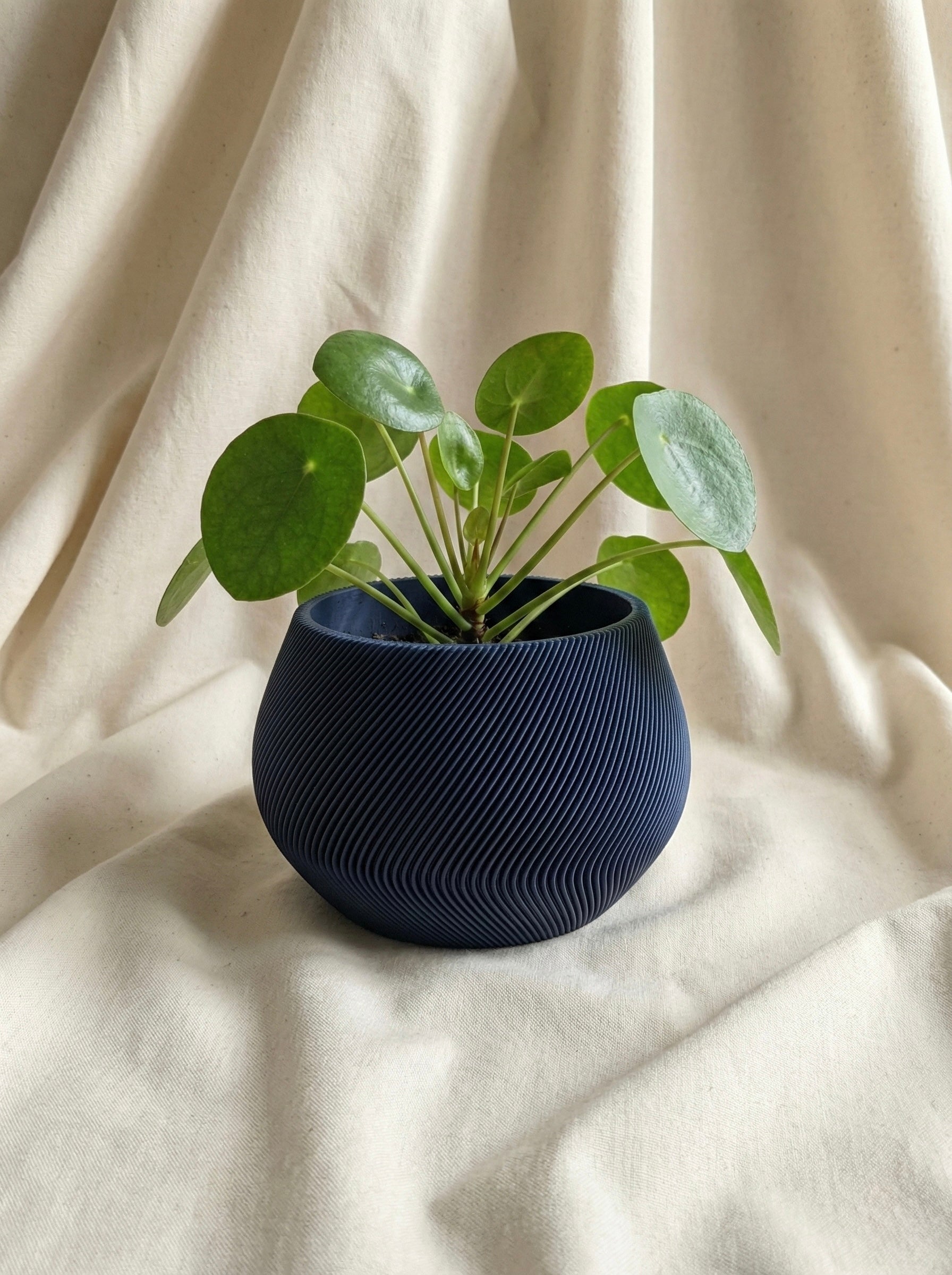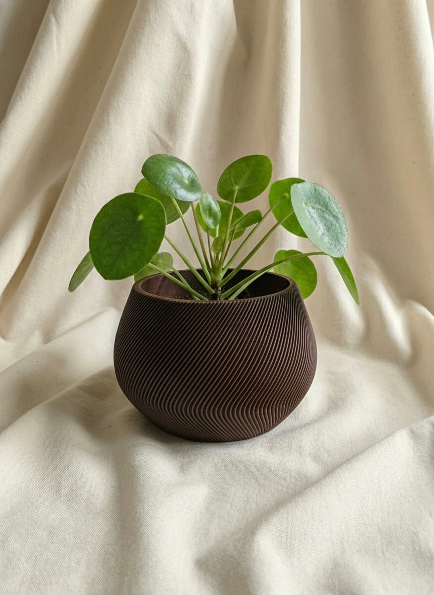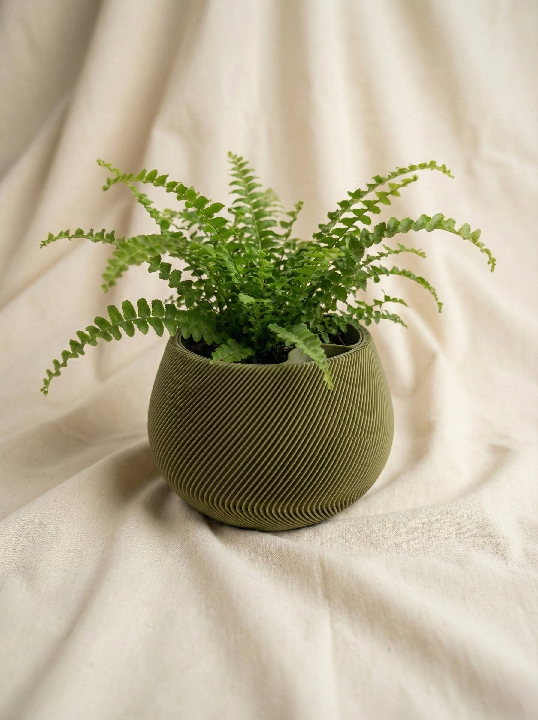 Estética Funcional: El orificio de riego no es un agregado, es parte de la morfología paramétrica de la pieza.